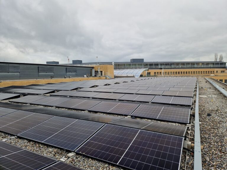 PV-Anlage auf dem Flachdach der Schwimmhalle